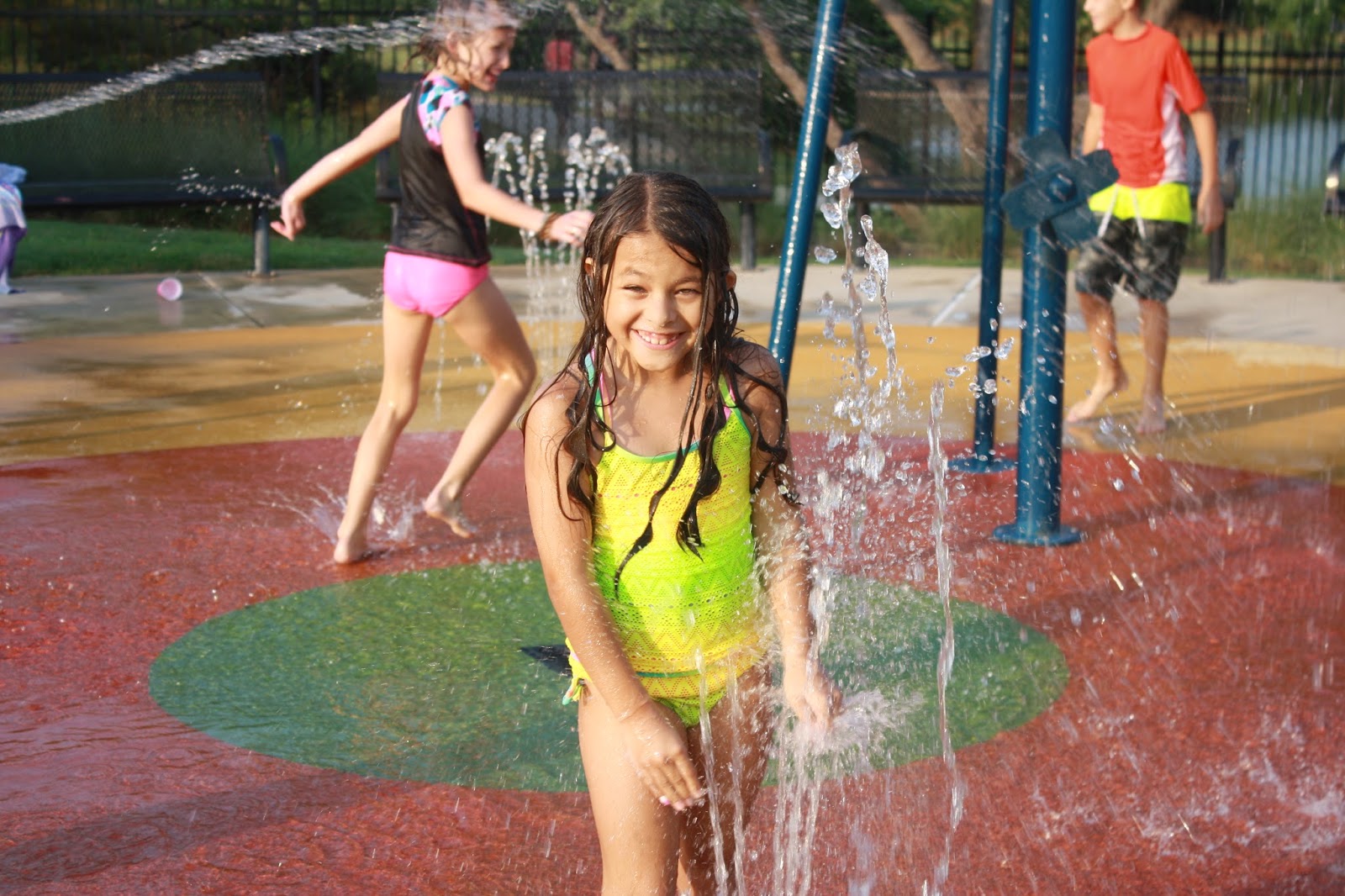 Now Miss Kins was happy as a lark once her 2nd "momma" showed up at the party. From the moment she saw her, Kins was waving her arms to instruct her other "momma" and have her follow around the splash park and cater to her every whim. Spoiled much? Seems that Kins was thrilled at not having to share her "momma" with two other baby girls this one evening. It was funny and sweet, we are very blessed to have this 2nd momma to love on her every day.